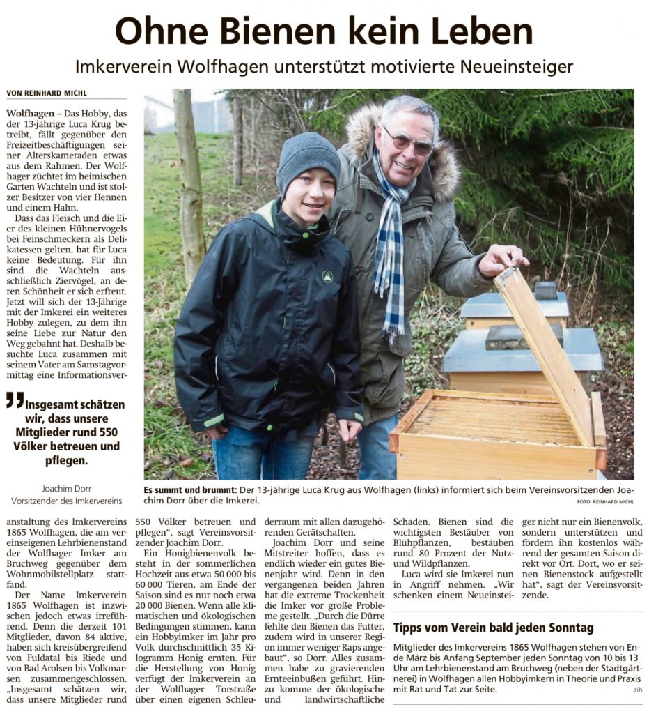 11.03.2020 - Ohne Bienen kein Leben ( HNA Artikel )