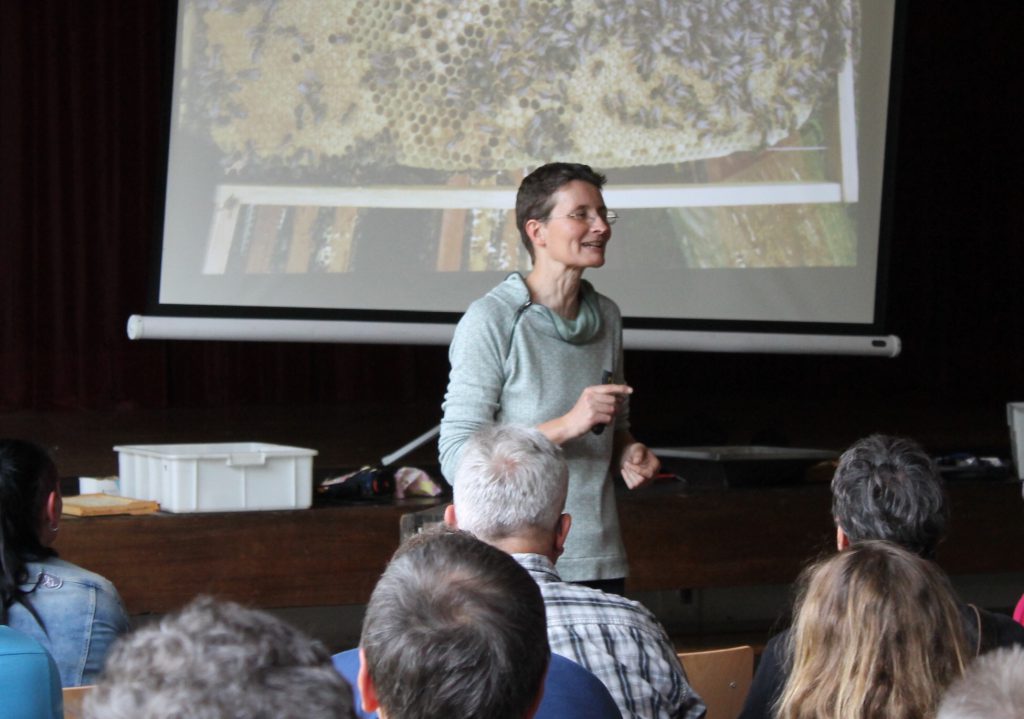 Unter dem Titel „Tipps und Tricks für faule Imker“ führte Frau Dr. Aumeier die fast 100 Gäste in ihrer unterhaltsamen, humorvollen Art und Weise, mit fundiertem Fachwissen durch das Bienenjahr. Sie vermittelte „Tipps und Tricks“ für die zentralen Arbeitsinhalte der Imkerei. Die Themen waren dabei u.a. Völkervermehrung, Schwarmkontrolle, Varroabekämpfung, Wabenhygiene, Honigernte, sowie die Arbeitsmaterialen, die dem „faulen“ Imker das Leben erleichtern.